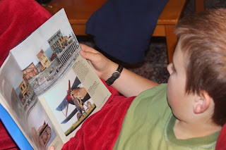 I 'caught' both boys on the couch completely immersed in their reading. It so happened that both were reading something they received from precious friends in California. Once immersed it is hard to get their attention, not even breakfast offers break the concentration.